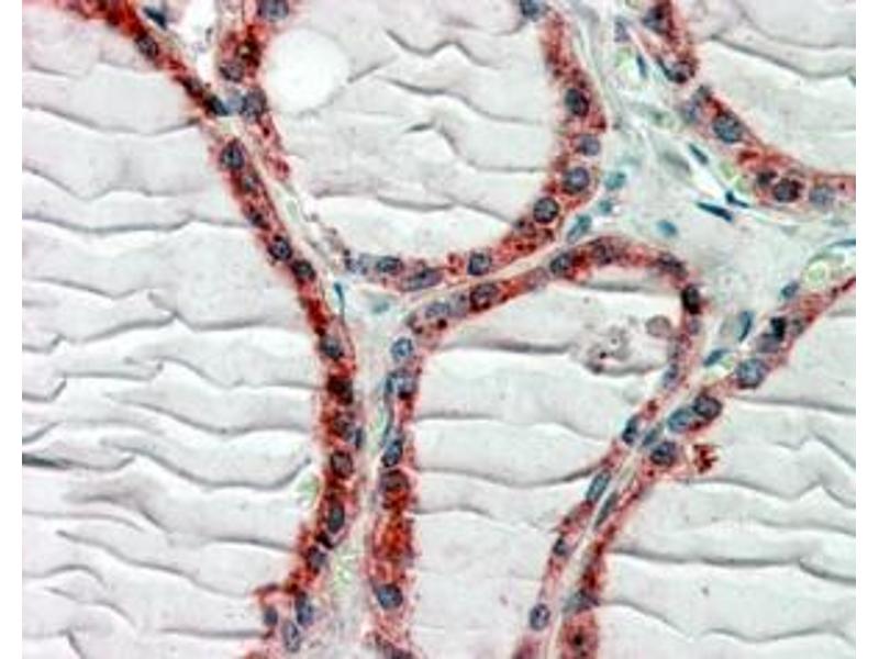 Immunohistochemistry: Paraffin embedded Human Thyroid and Prostate. Recommended concentration: 2.5 μg/mL.