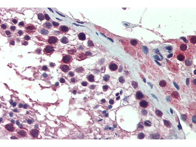 Immunohistochemistry: Paraffin embedded Human Testis. Recommended concentration: 10 μg/mL.