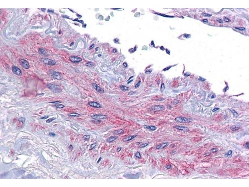 Immunohistochemistry: Paraffin embedded Human Spleen, Tonsil and Vessel. Recommended concentration: 3.75 μg/mL.