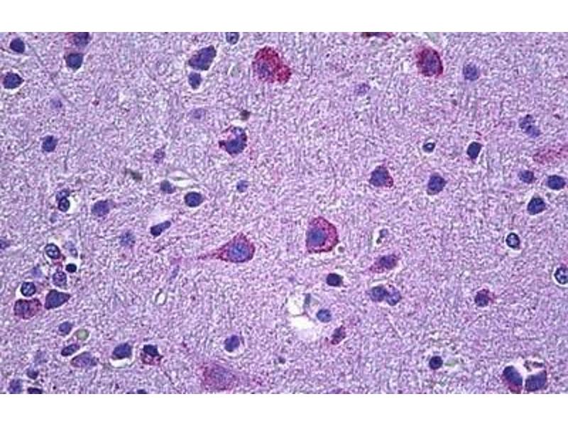 Immunohistochemistry: Paraffin embedded Human Brain (Cortex). Recommended concentration: 3.75 μg/mL.