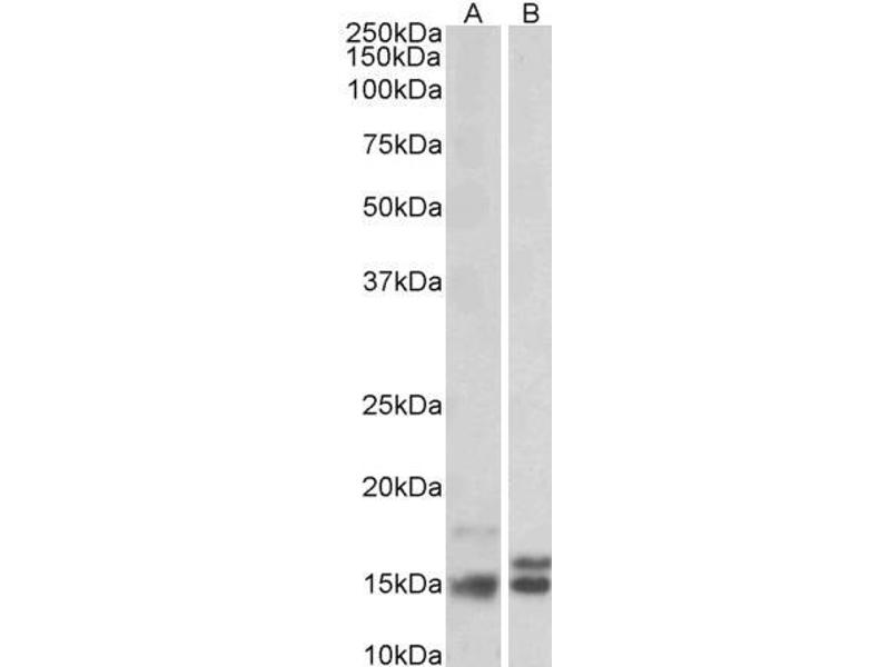 Western Blot: Approx 16 kDa band observed in Human Brain (Frontal Cortex) lysate (calculated MW of 7.6 kDa according to NP_006167.1). The observed molecular weights correspond to earlier findings in literature with different antibodies (Li et al, J Biol Ch