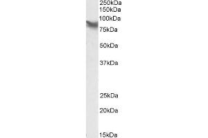 Western Blot: Approx 85 kDa band observed in Human Placenta lysates and in lysates of cell line HepG2 (calculated MW of 65.7 kDa according to NP_005569.1). This molecular weight is routinely observed by other sources. Recommended concentration: 0.1-0.3 μg/m