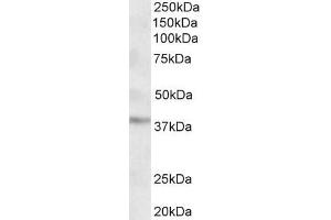 Western Blot: Approx 38 kDa band observed in Human Brain (Cerebral Cortex and Cerebellum) lysates (calculated MW of 37.2 kDa according to NP_055209.2). Recommended concentration: 1-3 μg/mL.