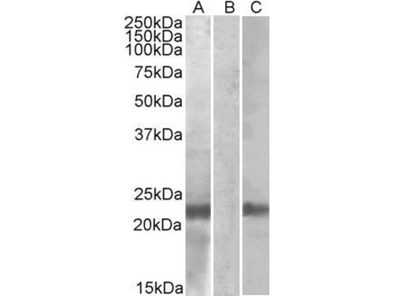 Western Blot: In transfected HEK293 transiently expressing Human CST8 (MYC and DYKDDDDK tagged), a band of approx. 23 kDa is observed. No bands are observed in mock-transfected HEK293 and the same band is observed using anti-myc tag antibody. Recommended