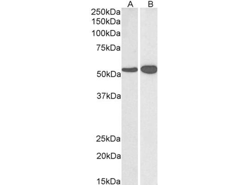 Western Blot: Approx 55 kDa band observed in Human Brain (Cerebellum) and Mouse Brain lysates and in Human, Mouse and Rat Liver lysates (calculated MW of 61.4 kDa according to Human NP_005262.1, of 61.3 kDa according to Mouse NP_032159.1 and of 61.4 kDa acco
