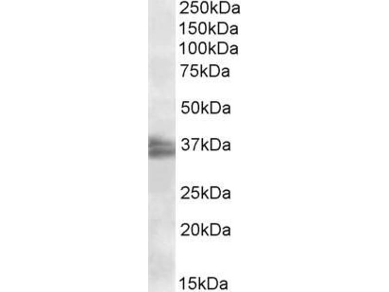Western Blot: Approx 35 kDa double band observed in nuclear lysates of cell line Jurkat (calculated MW of 29.2 kDa according to NP_004468.1). This molecular weight is routinely observed by other sources.