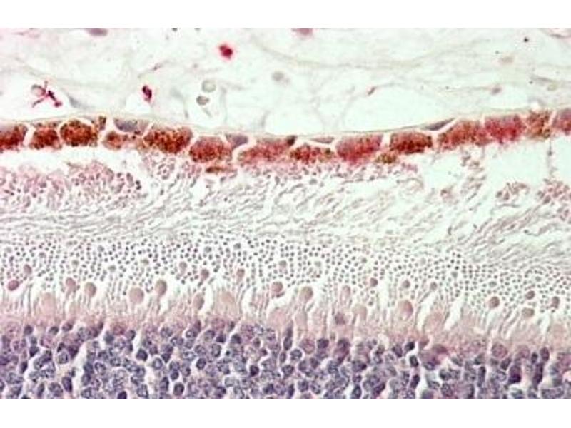 Immunohistochemistry: In paraffin embedded Human Retina shows staining of the Ganglion Cell Layer. Recommended concentration: 5-10 μg/mL.