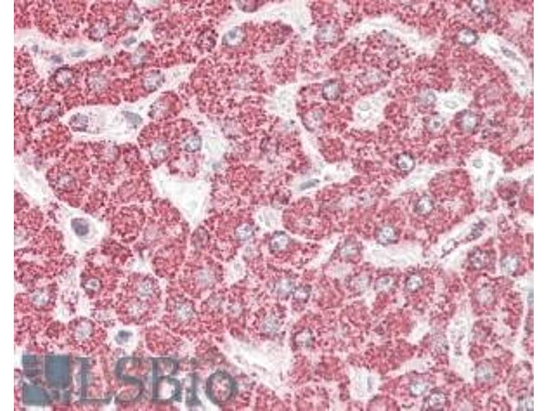 Immunohistochemistry: In paraffin embedded Human Liver shows mitochondrial staining in hepatocytes. Recommended concentration, 3-5 μg/mL.
