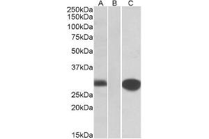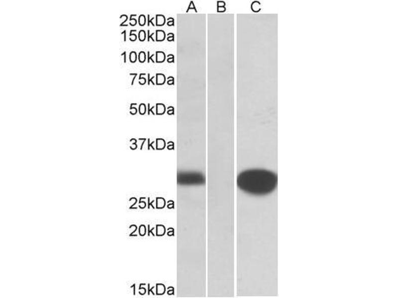 Western Blot: In transfected HEK293 transiently expressing full-length Human MID1IP1 (myc and DYKDDDDK tagged), a band of approx. 28 kDa was observed. No bands were observed in mock-transfected HEK293 and the same band was observed using anti-myc tag ant