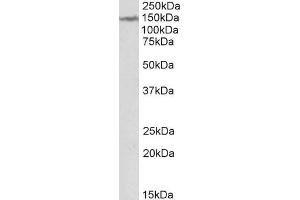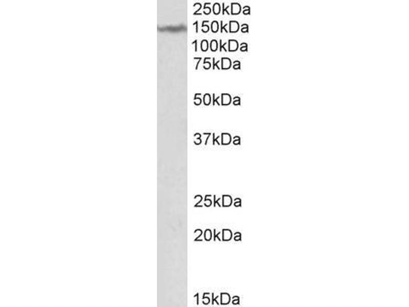 Western Blot: Approx 150 kDa band observed in Human Brain (Cerebellum) lysates (calculated MW of 165 kDa according to NP_055731.2). Recommended concentration: 1-3 μg/mL.