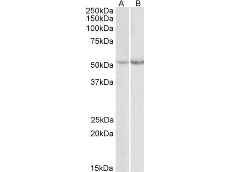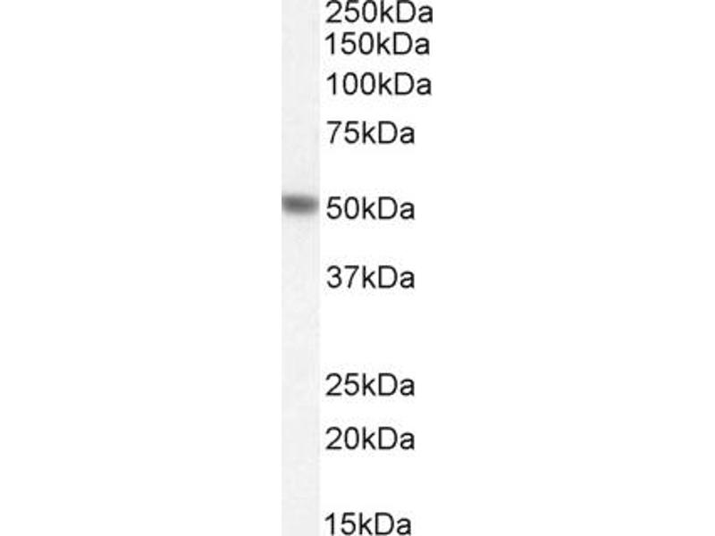 Western Blot: Approx 48 kDa band observed in Human Liver lysates and approx. 50-52 kDa in Rat Kidney lysates and in preliminary testing of Mouse Liver lysate (calculated MW of 51.9 kDa according to Hyman NP_000268.1 and Rat NP_036751.2). Recommended concen