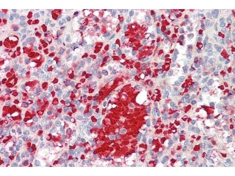 Immunohistochemistry: Paraffin embedded Human Spleen. Recommended concentration: 3.75 μg/mL.