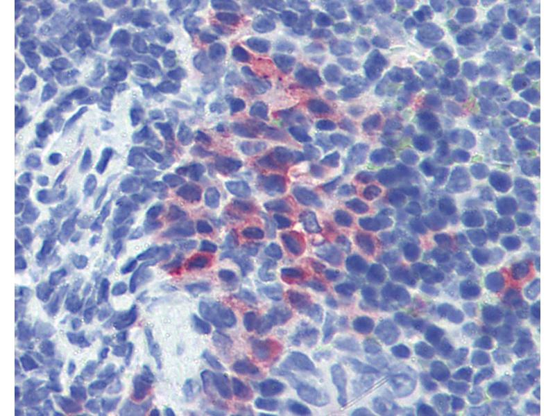Usage: Immunohistochemistry: This antibody was validated for use in immunohistochemistry on a panel of formalin-fixed, paraffin-embedded (FFPE) mouse tissues after heat induced antigen retrieval in pH 6.0 citrate buffer. After incubation with the primary antibody, slides were incubated with biotinylated secondary antibody, followed by alkaline phosphatase-streptavidin and chromogen. The stained slides were evaluated by a pathologist to confirm staining specificity. The optimal working concentration for this antibody was determined to be 10 μg/mL. -
