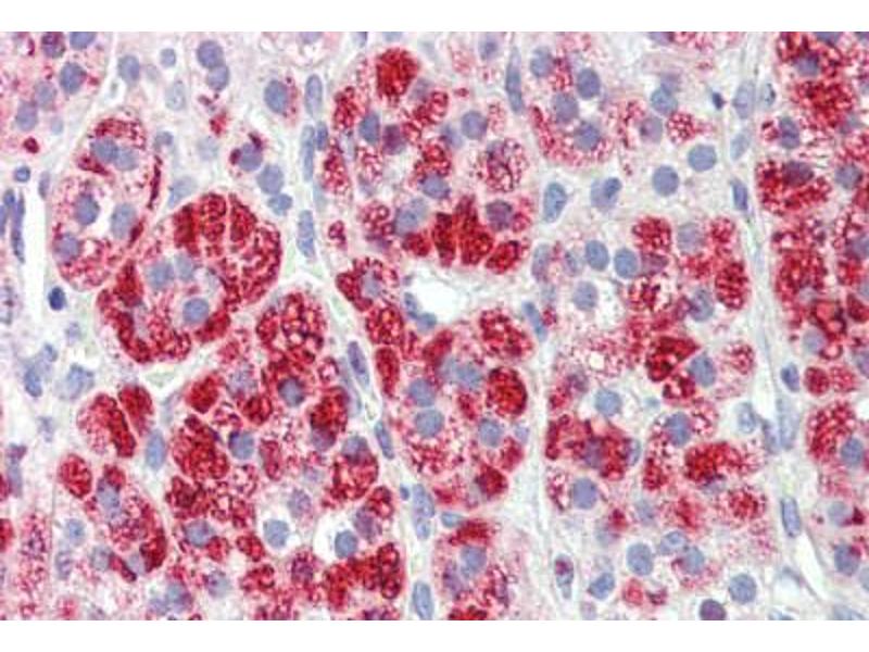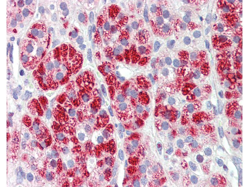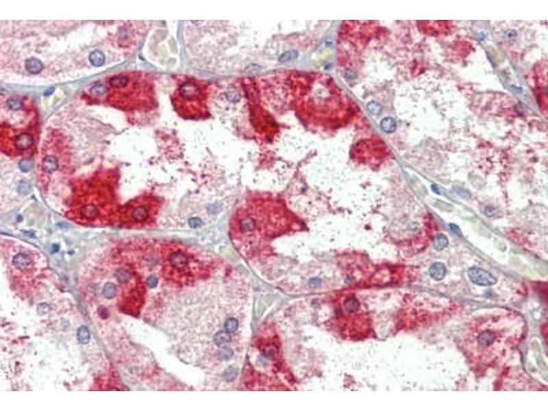 Usage: Immunohistochemistry: This antibody was validated for use in immunohistochemistry on a panel of 21 formalin-fixed, paraffin-embedded (FFPE) human tissues after heat induced antigen retrieval in pH 6.0 citrate buffer. After incubation with the primary antibody, slides were incubated with biotinylated secondary antibody, followed by alkaline phosphatase-streptavidin and chromogen. The stained slides were evaluated by a pathologist to confirm staining specificity. The optimal working concentration for this antibody was determined to be 3.75 μg/mL -