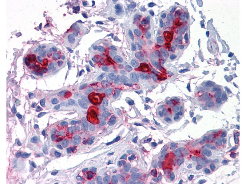 Usage: Immunohistochemistry: Validated for use in immunohistochemistry on a panel of 21 formalin-fixed, paraffin-embedded (FFPE) human tissues after heat induced antigen retrieval in pH 6.0 citrate buffer. After incubation with the primary antibody, slides were incubated with biotinylated secondary antibody, followed by alkaline phosphatase-streptavidin and chromogen. The stained slides were evaluated by a pathologist to confirm staining specificity. The optimal working concentration was determined to be 10 μg/mL. -