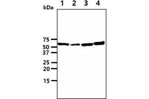 FkBP4, also known as FkBP52, is a member of the immunophilin protein family, which play a role in immunoregulation and basic cellular processes involving protein folding and trafficking. It is a component of unactivated mammalian steroid receptor complexes and may play a role in the intracellular trafficking of hetero-oligomeric forms of the steroid hormone receptors. It interacts with interferon regulatory factor-4 and plays an important role in immunoregulatory gene expression in B and T lymphocytes.