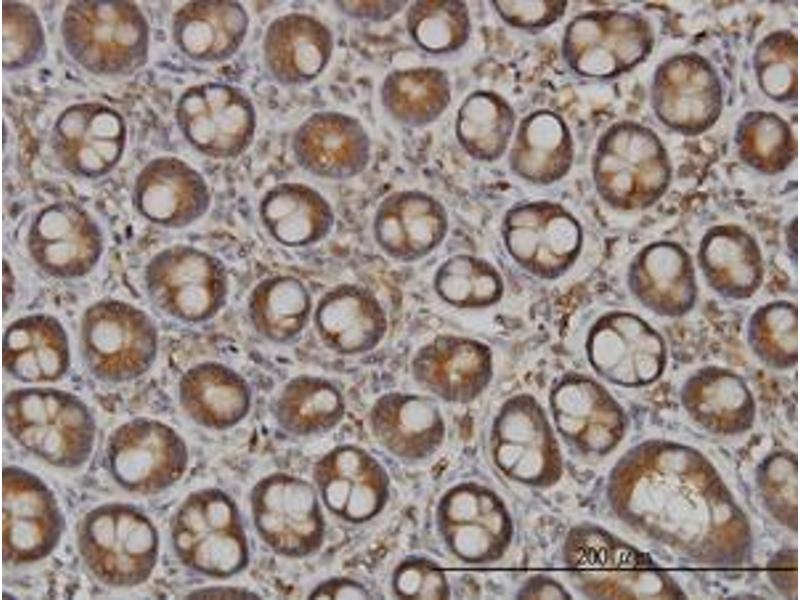 Usage: Immunohistochemistry: Formalin-fixed paraffin-embedded sections. Sandwich ELISA: Recombinant protein. Western Blot: Cell lysate, Recombinant protein. -