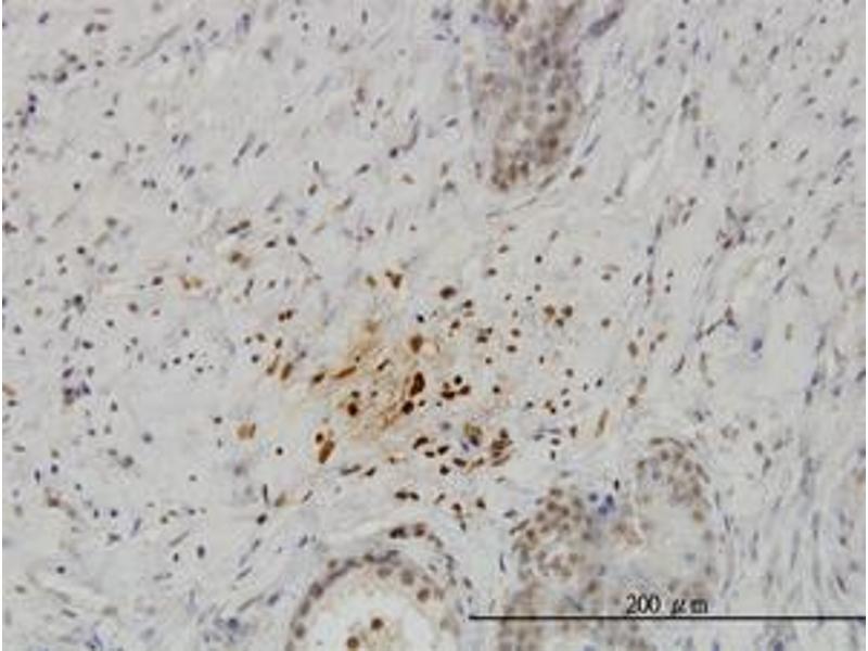 Usage: Immunohistochemistry: Formalin-fixed paraffin-embedded sections. Sandwich ELISA: Recombinant protein. Western Blot: Transfected lysate, Recombinant protein.