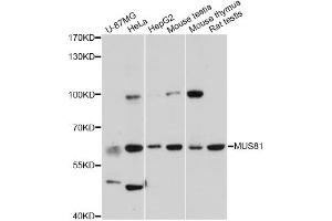 Der Kaninchen Polyklonal anti-MUS81 Antikörper (ABIN3059257) detektiert spezifisch MUS81 in WB.
