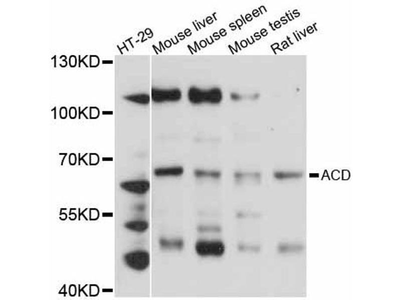 Dieser Anti-ACD Antikörper ist ein Kaninchen Polyklonal Antikörper zur Detektion von ACD in WB. Geeignet für Human, Ratte und Maus.