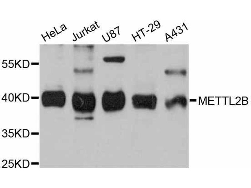 Der Kaninchen-Polyklonal Anti-METTL2B-Antikörper wurde für WB validiert. Er ist geeignet zum Nachweis von METTL2B in Proben aus Human.