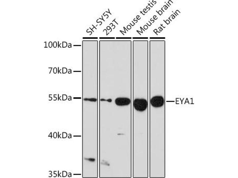 - This gene encodes a member of the eyes absent (EYA) family of proteins. The encoded protein may play a role in the developing kidney, branchial arches, eye, and ear. Mutations of this gene have been associated with branchiootorenal dysplasia syndrome, branchiootic syndrome, and sporadic cases of congenital cataracts and ocular anterior segment anomalies. A similar protein in mice can act as a transcriptional activator. Alternatively spliced transcript variants have been identified for this gene.,EYA1,BOP,BOR,BOS1,OFC1,Epigenetics & Nuclear Signaling,Chromatin Modifying Enzymes,Dephosphorylation,Cell Biology & Developmental Biology,EYA1