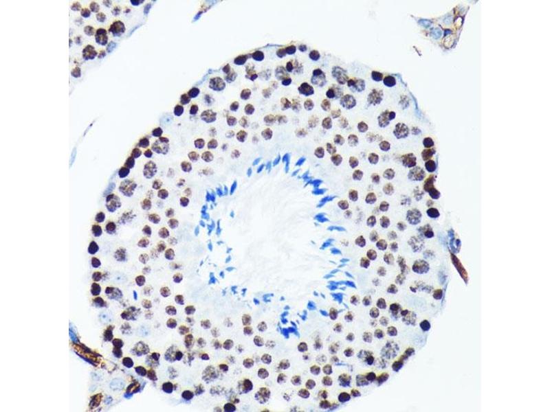 - Histones are basic nuclear proteins that are responsible for the nucleosome structure of the chromosomal fiber in eukaryotes. Two molecules of each of the four core histones (H2A, H2B, H3, and H4) form an octamer, around which approximately 146 bp of DNA is wrapped in repeating units, called nucleosomes. The linker histone, H1, interacts with linker DNA between nucleosomes and functions in the compaction of chromatin into higher order structures. This gene encodes a replication-independent histone that is a member of the histone H2A family, and generates two transcripts through the use of the conserved stem-loop termination motif, and the polyA addition motif. [provided by RefSeq, Oct 2015],H2A.X,H2A/X,H2AX,Histone H2AX,H2AFX,histone H2AX,gamma H2A.X,γH2AX,DNA Damage & Repair,Epigenetic Modifications,Epigenetic Modifications_Acetylation,Epigenetic Modifications_Phosphorylation,Epigenetics & Nuclear Signaling,Histones,Protein phosphorylation,Histone H2A