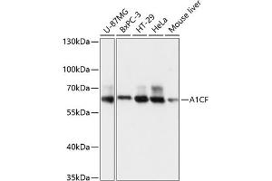 - Mammalian apolipoprotein B mRNA undergoes site-specific C to U deamination, which is mediated by a multi-component enzyme complex containing a minimal core composed of APOBEC-1 and a complementation factor encoded by this gene. The gene product has three non-identical RNA recognition motifs and belongs to the hnRNP R family of RNA-binding proteins. It has been proposed that this complementation factor functions as an RNA-binding subunit and docks APOBEC-1 to deaminate the upstream cytidine. Studies suggest that the protein may also be involved in other RNA editing or RNA processing events. Several transcript variants encoding a few different isoforms have been found for this gene.,A1CF,ACF,ACF64,ACF65,APOBEC1CF,ASP,Epigenetics & Nuclear Signaling,A1CF
