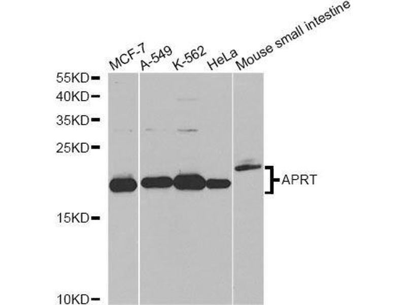 Adenine phosphoribosyltransferase belongs to the purine/pyrimidine phosphoribosyltransferase family. A conserved feature of this gene is the distribution of CpG dinucleotides. This enzyme catalyzes the formation of AMP and inorganic pyrophosphate from adenine and 5-phosphoribosyl-1-pyrophosphate (PRPP). It also produces adenine as a by-product of the polyamine biosynthesis pathway. A homozygous deficiency in this enzyme causes 2,8-dihydroxyadenine urolithiasis. Two transcript variants encoding different isoforms have been found for this gene.,APRT,AMP,APRTD,Cancer,Signal Transduction,Endocrine & Metabolism,APRT