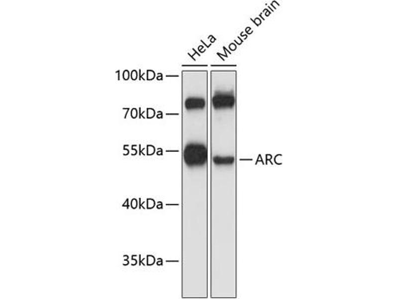 Der Kaninchen Polyklonal anti-Arc Antikörper (ABIN6137063) detektiert spezifisch Arc in WB.