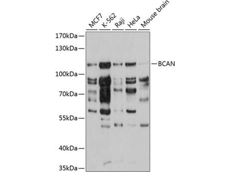 This gene encodes a member of the lectican family of chondroitin sulfate proteoglycans that is specifically expressed in the central nervous system. This protein is developmentally regulated and may function in the formation of the brain extracellular matrix. This protein is highly expressed in gliomas and may promote the growth and cell motility of brain tumor cells. Alternate splicing results in multiple transcript variants.,BCAN,BEHAB,CSPG7,brevican,Signal Transduction,Cell Biology & Developmental Biology,Cell Adhesion,Cytoskeleton,Extracellular Matrix,Neuroscience,Neurodegenerative Diseases,Amyloid Plaque and Neurofibrillary Tangle Formation in Alzheimer's Disease,BCAN