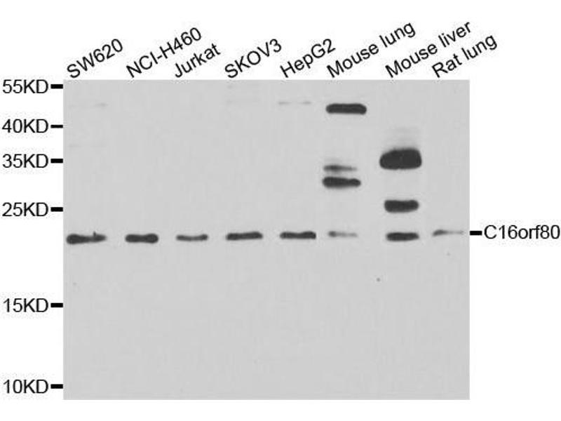 Kurzübersicht für C16orf80 Antikörper (AA 1-193) (ABIN6137735)