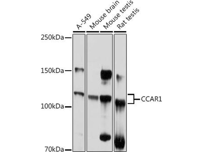 Associates with components of the Mediator and p160 coactivator complexes that play a role as intermediaries transducing regulatory signals from upstream transcriptional activator proteins to basal transcription machinery at the core promoter. Recruited to endogenous nuclear receptor target genes in response to the appropriate hormone. Also functions as a p53 coactivator. May thus play an important role in transcriptional regulation (By similarity. May be involved in apoptosis signaling in the presence of the reinoid CD437. Apoptosis induction involves sequestration of 14-3-3 protein(s and mediated altered expression of multiple cell cycle regulatory genes including MYC, CCNB1 and CDKN1A. Plays a role in cell cycle progression and/or cell proliferation. In association with CALCOCO1 enhances GATA1- and MED1-mediated transcriptional activation from the gamma-globin promoter during erythroid differentiation of K562 erythroleukemia cells. Can act as a both a coactivator and corepressor of AR-mediated transcription. Contributes to chromatin looping and AR transcription complex assembly by stabilizing AR-GATA2 association on chromatin and facilitating MED1 and RNA polymerase II recruitment to AR-binding sites. May play an important role in the growth and tumorigenesis of prostate cancer cells.,CCAR1,Epigenetics & Nuclear Signaling,RNA Binding,Cell Biology & Developmental Biology,Apoptosis,Cell Cycle,Endocrine & Metabolism,CCAR1
