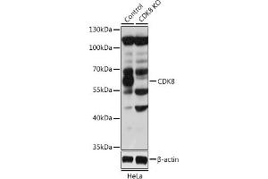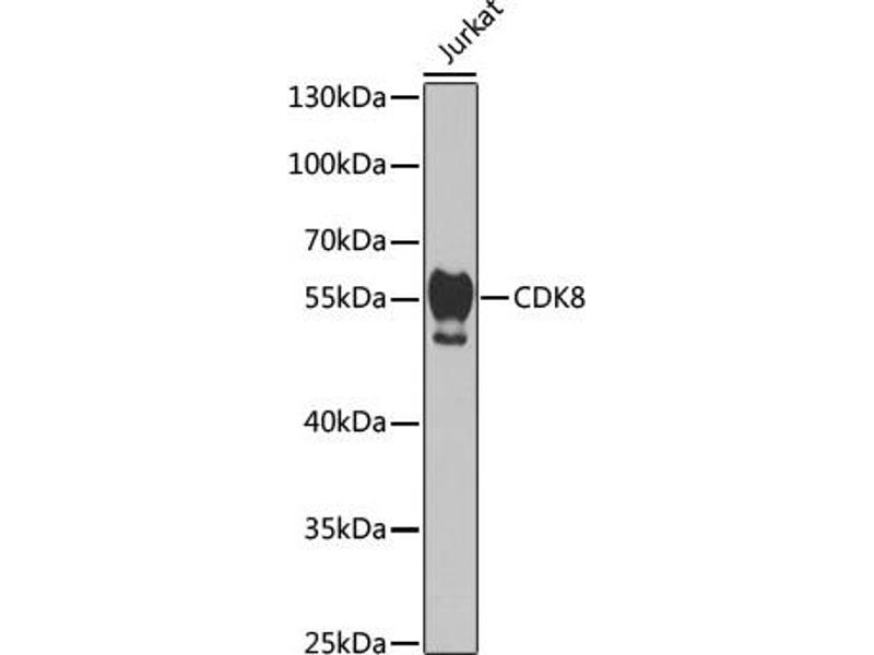 - This gene encodes a member of the cyclin-dependent protein kinase (CDK) family. CDK family members are known to be important regulators of cell cycle progression. This kinase and its regulatory subunit, cyclin C, are components of the Mediator transcriptional regulatory complex, involved in both transcriptional activation and repression by phosphorylation of the carboxy-terminal domain of the largest subunit of RNA polymerase II. This kinase regulates transcription by targeting the cyclin-dependent kinase 7 subunits of the general transcription initiation factor IIH, thus providing a link between the Mediator complex and the basal transcription machinery. Multiple pseudogenes of this gene have been identified. Alternative splicing results in multiple transcript variants.,CDK8,K35,Epigenetics & Nuclear Signaling,Signal Transduction,Kinase,Serine/threonine kinases,Cell Biology & Developmental Biology,Cell Cycle,Notch Signaling Pathway,Wnt/β-Catenin Signaling Pathway,CDK8