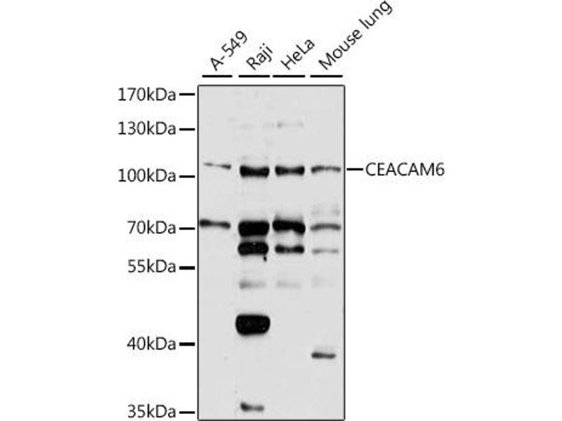 Der Kaninchen Polyklonal anti-CEACAM6 Antikörper wird verwendet zum Nachweis von CEACAM6 in Proben von Human. Er wurde validiert für WB.