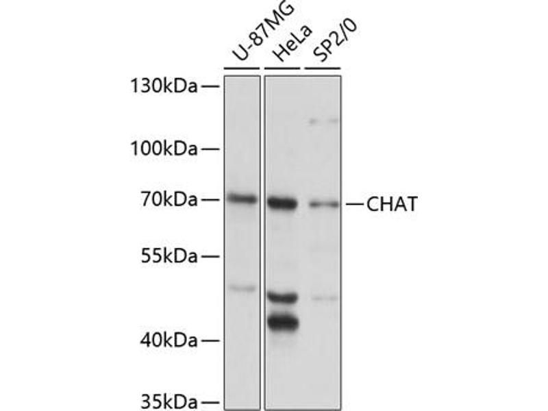Der Kaninchen Polyklonal anti-Choline Acetyltransferase Antikörper wird verwendet zum Nachweis von Choline Acetyltransferase in Proben von Human. Er wurde validiert für WB, IHC und IF.
