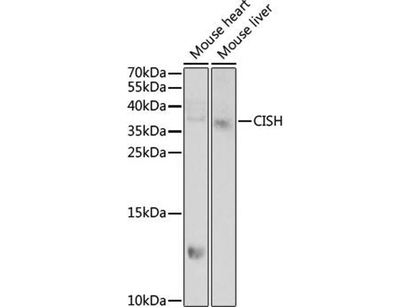 The protein encoded by this gene contains a SH2 domain and a SOCS box domain. The protein thus belongs to the cytokine-induced STAT inhibitor (CIS), also known as suppressor of cytokine signaling (SOCS) or STAT-induced STAT inhibitor (SSI), protein family. CIS family members are known to be cytokine-inducible negative regulators of cytokine signaling. The expression of this gene can be induced by IL2, IL3, GM-CSF and EPO in hematopoietic cells. Proteasome-mediated degradation of this protein has been shown to be involved in the inactivation of the erythropoietin receptor. Multiple transcript variants encoding different isoforms have been found for this gene.,CISH,BACTS2,CIS,CIS-1,G18,SOCS,Epigenetics & Nuclear Signaling,Signal Transduction,Immunology & Inflammation,IL-6 Receptor Signaling Pathway,CISH