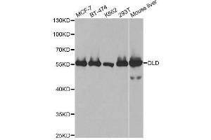 This gene encodes a member of the class-I pyridine nucleotide-disulfide oxidoreductase family. The encoded protein has been identified as a moonlighting protein based on its ability to perform mechanistically distinct functions. In homodimeric form, the encoded protein functions as a dehydrogenase and is found in several multi-enzyme complexes that regulate energy metabolism. However, as a monomer, this protein can function as a protease. Mutations in this gene have been identified in patients with E3-deficient maple syrup urine disease and lipoamide dehydrogenase deficiency. Alternative splicing results in multiple transcript variants.,DLD,DLDD,DLDH,E3,GCSL,LAD,PHE3,Cancer,Signal Transduction,Endocrine & Metabolism,Amino acid metabolism,Carbohydrate metabolism,DLD