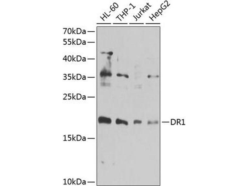 - This gene encodes a TBP- (TATA box-binding protein) associated phosphoprotein that represses both basal and activated levels of transcription. The encoded protein is phosphorylated in vivo and this phosphorylation affects its interaction with TBP. This protein contains a histone fold motif at the amino terminus, a TBP-binding domain, and a glutamine- and alanine-rich region. The binding of DR1 repressor complexes to TBP-promoter complexes may establish a mechanism in which an altered DNA conformation, together with the formation of higher order complexes, inhibits the assembly of the preinitiation complex and controls the rate of RNA polymerase II transcription.,DR1,NC2,NC2-BETA,NC2B,NCB2,Epigenetics & Nuclear Signaling,Transcription Factors,DR1