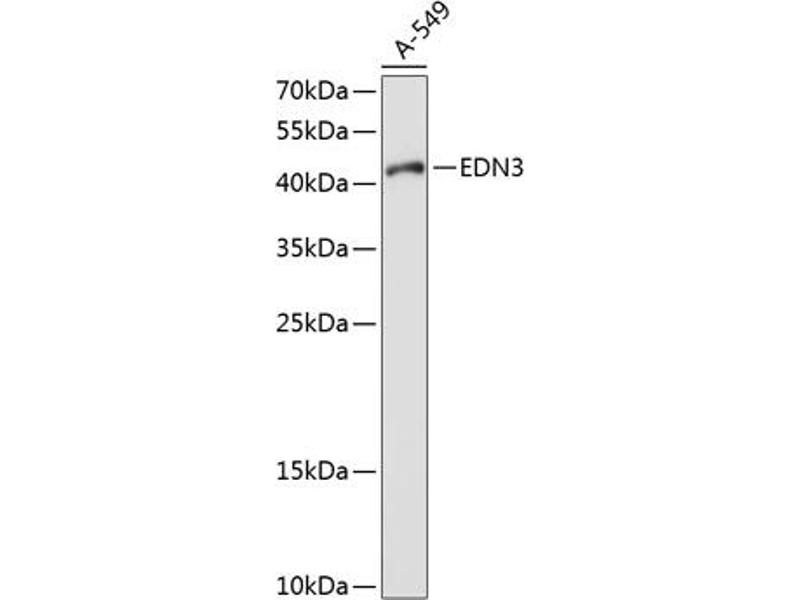 The protein encoded by this gene is a member of the endothelin family. Endothelins are endothelium-derived vasoactive peptides involved in a variety of biological functions. The active form of this protein is a 21 amino acid peptide processed from the precursor protein. The active peptide is a ligand for endothelin receptor type B (EDNRB). The interaction of this endothelin with EDNRB is essential for development of neural crest-derived cell lineages, such as melanocytes and enteric neurons. Mutations in this gene and EDNRB have been associated with Hirschsprung disease (HSCR) and Waardenburg syndrome (WS), which are congenital disorders involving neural crest-derived cells. Altered expression of this gene is implicated in tumorigenesis. Alternative splicing results in multiple transcript variants encoding different isoforms.,EDN3,ET-3,ET3,HSCR4,PPET3,WS4B,Cancer,Invasion and Metastasis,Signal Transduction,Neuroscience,EDN3