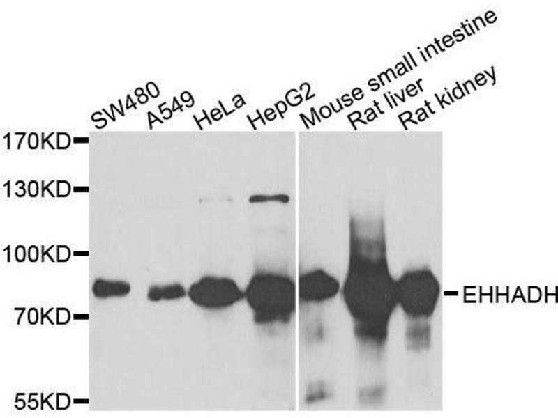 Der Kaninchen Polyklonal Anti-EHHADH Antikörper wurde für WB validiert. Er ist geeignet, EHHADH in Proben von Human zu detektieren.