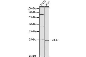 The protein encoded by this gene is a component of the eukaryotic translation initiation factor 4F complex, which recognizes the 7-methylguanosine cap structure at the 5' end of messenger RNAs. The encoded protein aids in translation initiation by recruiting ribosomes to the 5'-cap structure. Association of this protein with the 4F complex is the rate-limiting step in translation initiation. This gene acts as a proto-oncogene, and its expression and activation is associated with transformation and tumorigenesis. Several pseudogenes of this gene are found on other chromosomes. Alternative splicing results in multiple transcript variants.,AUTS19,CBP,EIF4E1,EIF4EL1,EIF4F,eIF-4E,EIF4E,Epigenetics & Nuclear Signaling,Translation Control,Regulation of eIF4 and p70 S6 Kinase,Signal Transduction,Endocrine & Metabolism,Insulin Receptor Signaling Pathway,Immunology & Inflammation,Cardiovascular,Angiogenesis,EIF4E