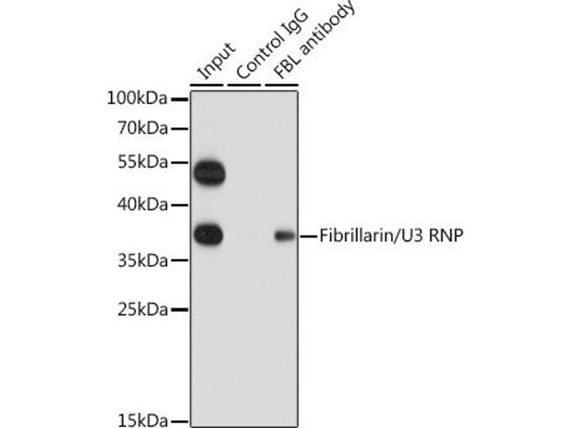 - This gene product is a component of a nucleolar small nuclear ribonucleoprotein (snRNP) particle thought to participate in the first step in processing preribosomal RNA. It is associated with the U3, U8, and U13 small nuclear RNAs and is located in the dense fibrillar component (DFC) of the nucleolus. The encoded protein contains an N-terminal repetitive domain that is rich in glycine and arginine residues, like fibrillarins in other species. Its central region resembles an RNA-binding domain and contains an RNP consensus sequence. Antisera from approximately 8 % of humans with the autoimmune disease scleroderma recognize fibrillarin.,FBL,FIB,FLRN,RNU3IP1,Nop1,Epigenetics & Nuclear Signaling,RNA Binding,FBL