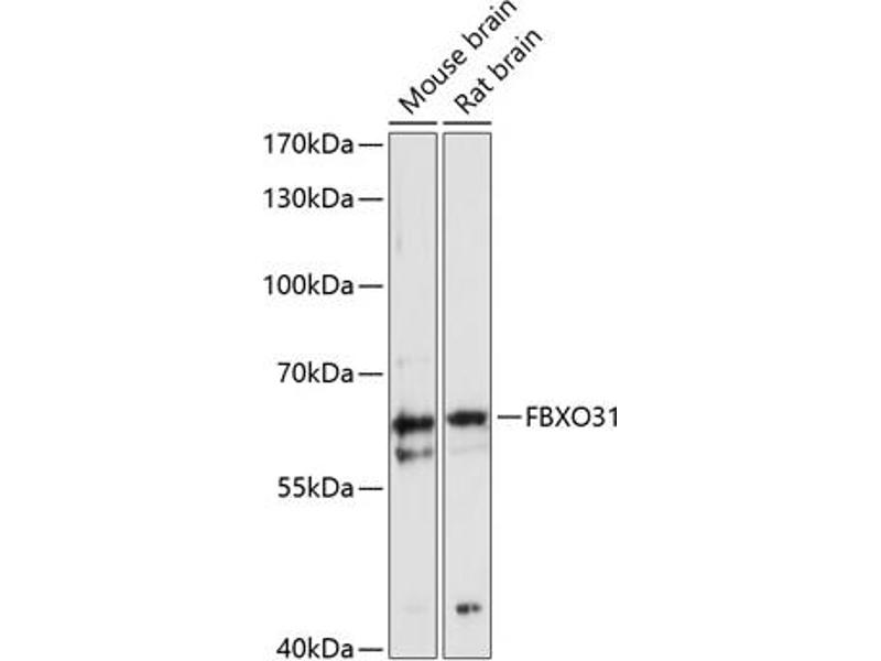 This gene is a member of the F-box family. Members are classified into three classes according to the substrate interaction domain, FBW for WD40 repeats, FBL for leucing-rich repeats, and FBXO for other domains. This protein, classified into the last category because of the lack of a recognizable substrate binding domain, has been proposed to be a component of the SCF ubiquitination complex. It is thought to bind and recruit substrate for ubiquitination and degradation. This protein may have a role in regulating the cell cycle as well as dendrite growth and neuronal migration. Alternative splicing results in multiple transcript variants.,FBXO31,FBX14,FBXO14,Fbx31,MRT45,pp2386,Cancer,Tumor suppressors,Cell Biology & Developmental Biology,Ubiquitin,FBXO31