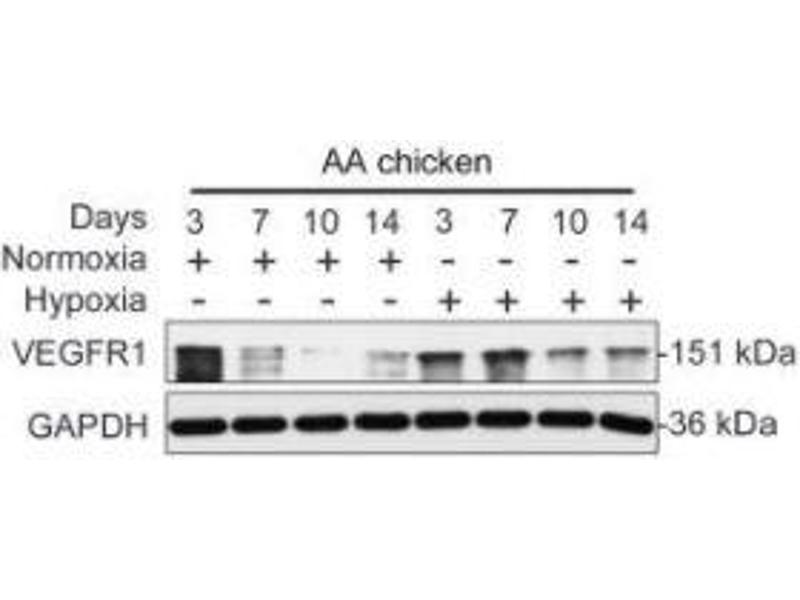 This gene encodes a member of the vascular endothelial growth factor receptor (VEGFR) family. VEGFR family members are receptor tyrosine kinases (RTKs) which contain an extracellular ligand-binding region with seven immunoglobulin (Ig)-like domains, a transmembrane segment, and a tyrosine kinase (TK) domain within the cytoplasmic domain. This protein binds to VEGFR-A, VEGFR-B and placental growth factor and plays an important role in angiogenesis and vasculogenesis. Expression of this receptor is found in vascular endothelial cells, placental trophoblast cells and peripheral blood monocytes. Multiple transcript variants encoding different isoforms have been found for this gene. Isoforms include a full-length transmembrane receptor isoform and shortened, soluble isoforms. The soluble isoforms are associated with the onset of pre-eclampsia.,FLT,FLT-1,VEGFR-1,VEGFR1,FLT1,Cancer,Invasion and Metastasis,Signal Transduction,Kinase,Tyrosine kinases,Cell Biology & Developmental Biology,Growth factor,VEGF,VEGF Receptors,Endocrine & Metabolism,Cardiovascular,Angiogenesis,Angiogenic growth factors,Hypoxia,FLT1