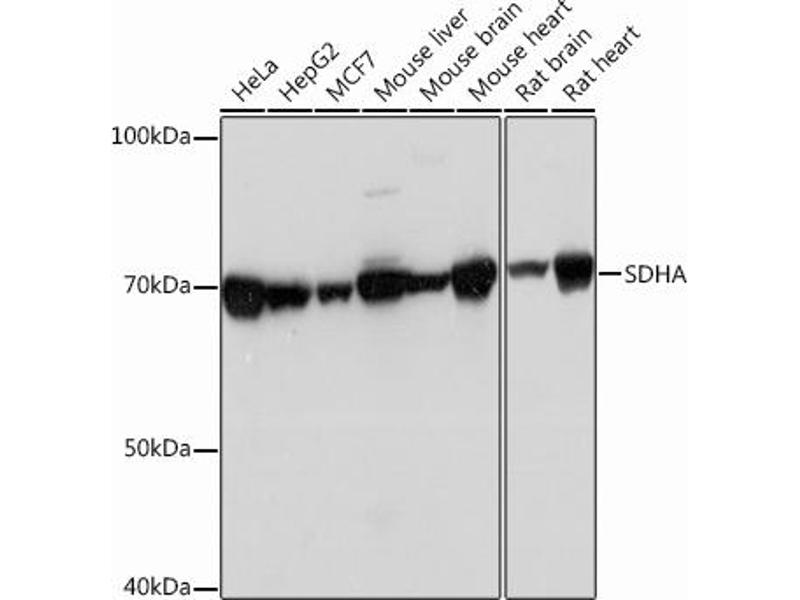 Der Kaninchen Monoklonal anti-SDHA Antikörper (ABIN6140956) detektiert spezifisch SDHA in WB.