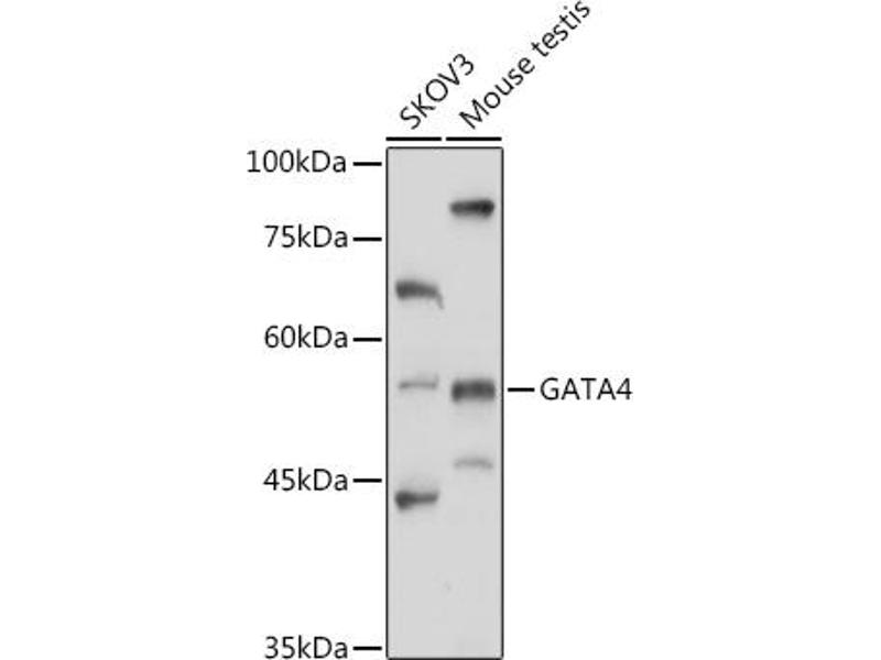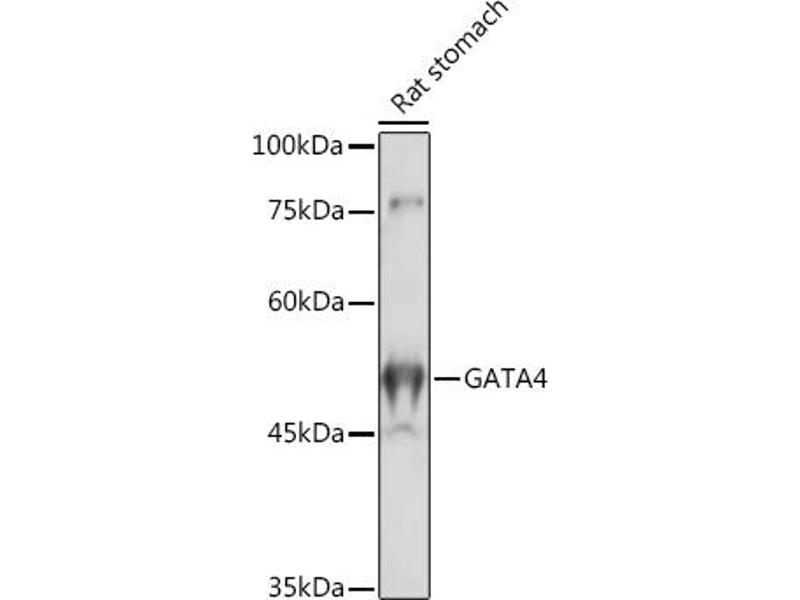 This gene encodes a member of the GATA family of zinc-finger transcription factors. Members of this family recognize the GATA motif which is present in the promoters of many genes. This protein is thought to regulate genes involved in embryogenesis and in myocardial differentiation and function, and is necessary for normal testicular development. Mutations in this gene have been associated with cardiac septal defects. Additionally, alterations in gene expression have been associated with several cancer types. Alternative splicing results in multiple transcript variants.,GATA4,ASD2,TACHD,TOF,VSD1,Epigenetics & Nuclear Signaling,Transcription Factors,Cancer,Tumor suppressors,Cell Biology & Developmental Biology,Stem Cells,Mesenchymal Stem Cells,Cardiovascular,Cardiovascular Markers,Cardiomyocytes,Heart,Hypertrophy,GATA4