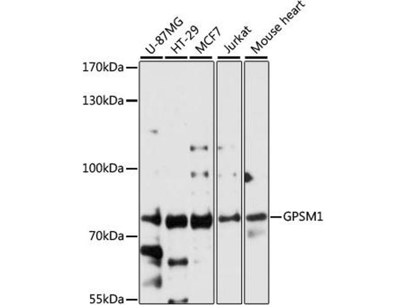 G-protein signaling modulators (GPSMs) play diverse functional roles through their interaction with G-protein subunits. This gene encodes a receptor-independent activator of G protein signaling, which is one of several factors that influence the basal activity of G-protein signaling systems. The protein contains seven tetratricopeptide repeats in its N-terminal half and four G-protein regulatory (GPR) motifs in its C-terminal half. Multiple alternatively spliced transcript variants encoding different isoforms have been found for this gene.,GPSM1,AGS3,Signal Transduction,G protein signaling,G-Protein-Coupled Receptors(GPCR),Signal Transduction,Cell Biology & Developmental Biology,Cell Cycle,Cell differentiation,GPSM1