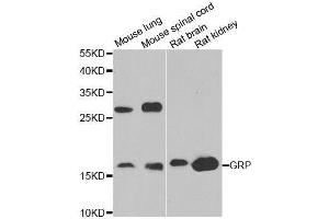 - This gene encodes a member of the bombesin-like family of gastrin-releasing peptides. The encoded preproprotein is proteolytically processed to generate two peptides, gastrin-releasing peptide and neuromedin-C. These peptides regulate numerous functions of the gastrointestinal and central nervous systems, including release of gastrointestinal hormones, smooth muscle cell contraction, and epithelial cell proliferation. These peptides are also likely to play a role in human cancers of the lung, colon, stomach, pancreas, breast, and prostate. Alternative splicing results in multiple transcript variants, at least one of which encodes a preproprotein that is proteolytically processed.,GRP,BN,GRP-10,preproGRP,proGRP,GRP,Signal Transduction,Cell Biology & Developmental Biology,Growth factor,GRP