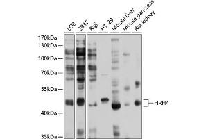 Histamine is a ubiquitous messenger molecule released from mast cells, enterochromaffin-like cells, and neurons. Its various actions are mediated by a family of histamine receptors, which are a subset of the G-protein coupled receptor superfamily. This gene encodes a histamine receptor that is predominantly expressed in haematopoietic cells. The protein is thought to play a role in inflammation and allergy reponses. Multiple transcript variants encoding different isoforms have been found for this gene.,HRH4,AXOR35,BG26,GPCR105,GPRv53,H4,H4R,HH4R,Signal Transduction,G protein signaling,G-Protein-Coupled Receptors(GPCR),Neuroscience,HRH4